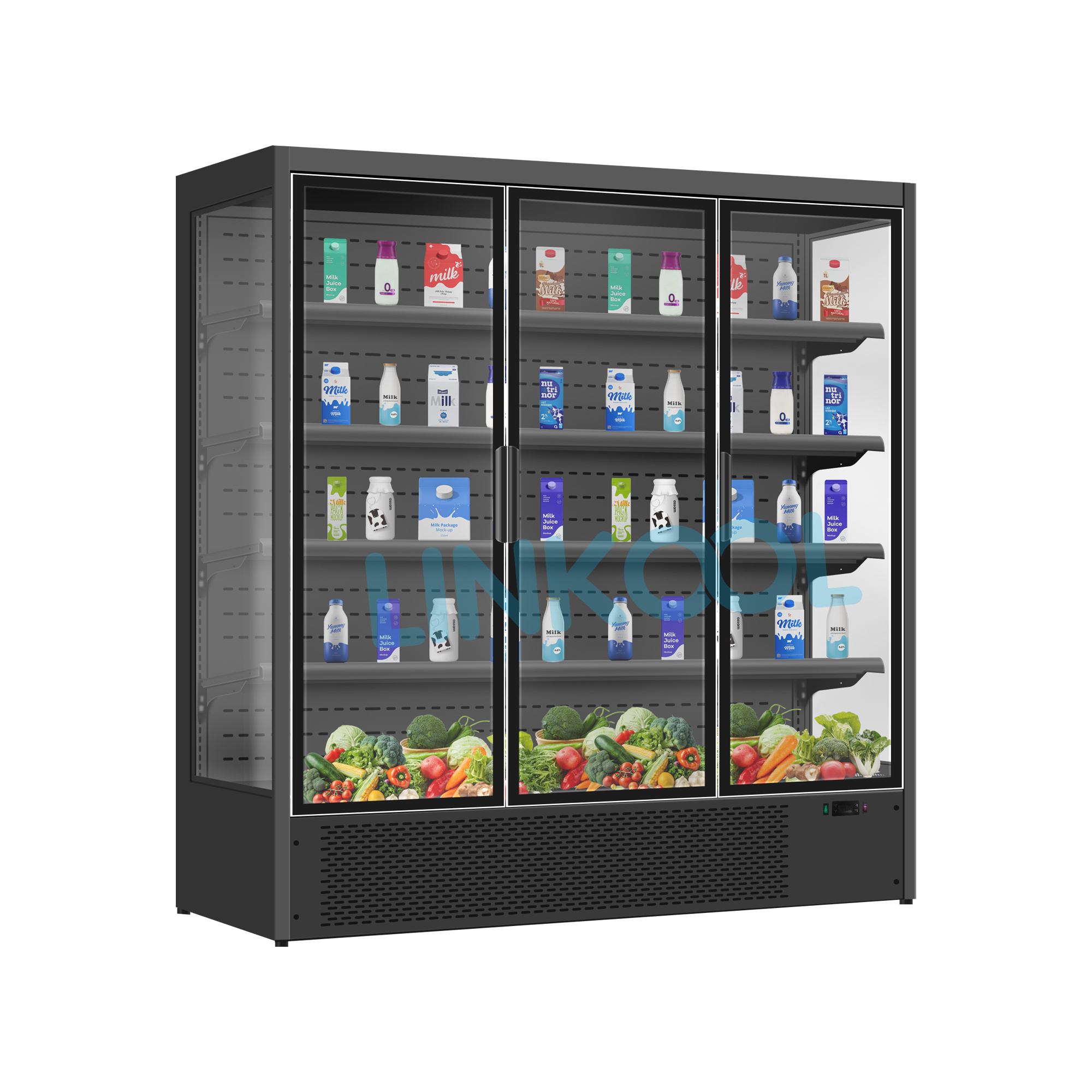 Commercial Air Cooling Open Chiller Glass Door Large Refrigerator for Beverage and Fresh Food Display