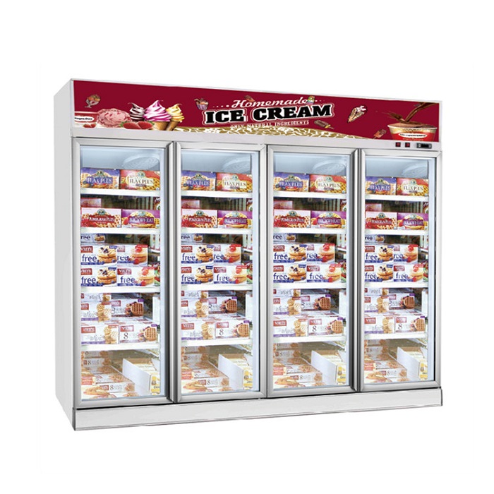 Large Capacity 3 Glass Doors Commercial Refrigeration Equipment Ice Cream Display Freezer