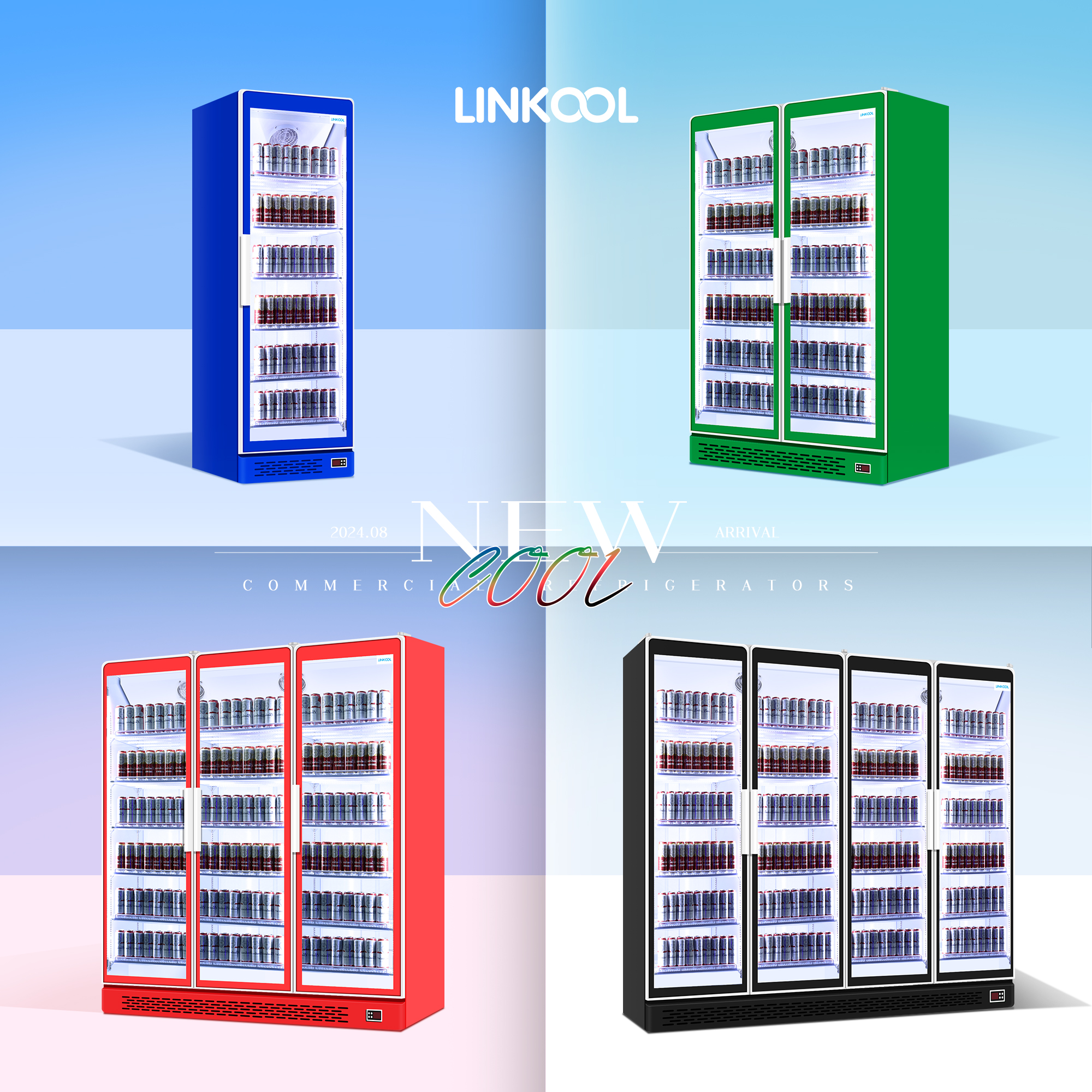 LINKOOL New Style Full Glass Display Freezer Commercial Fan Cooling Vertical Refrigerator Freezer for Ice Cream