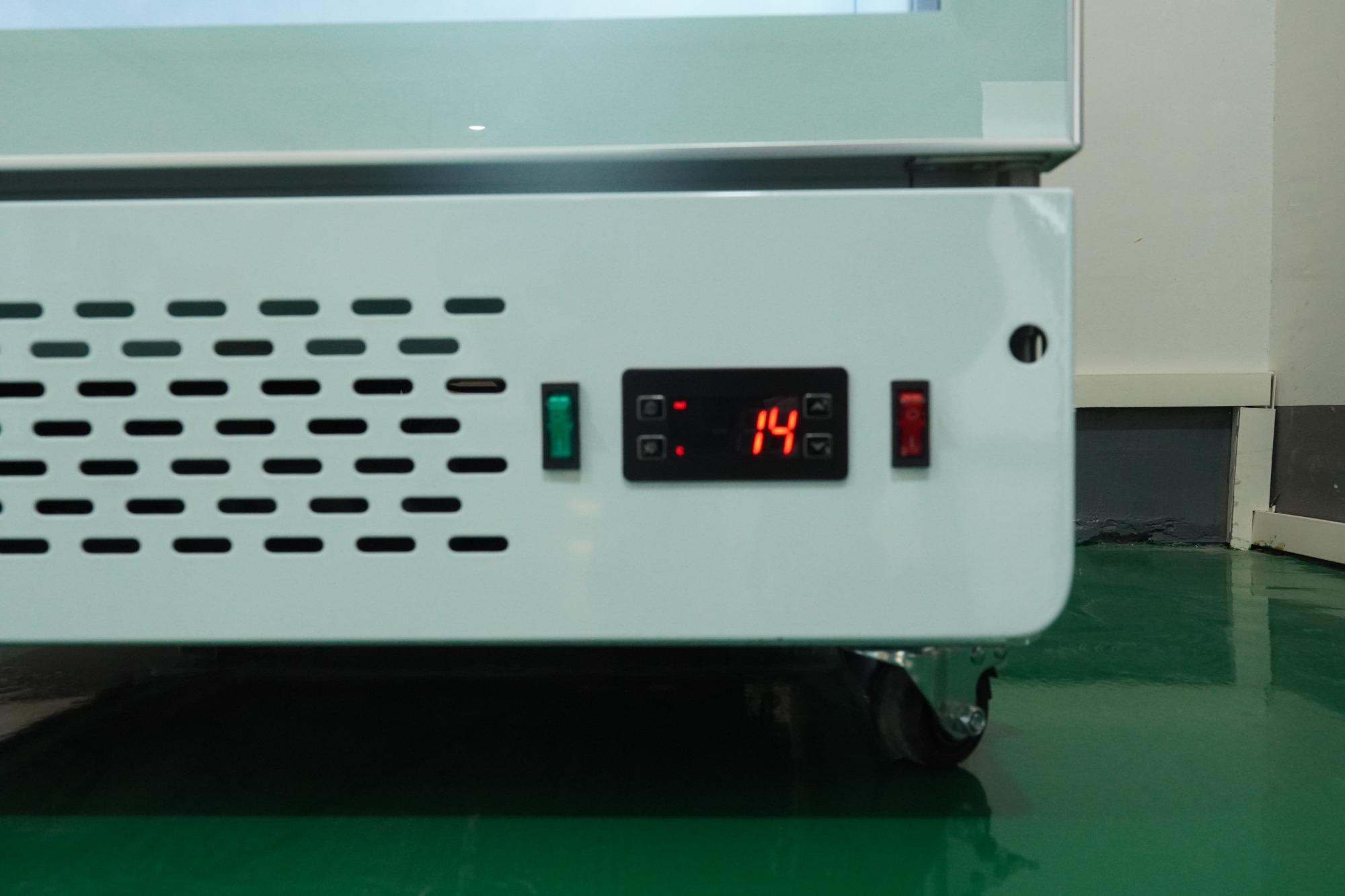 Each of the three doors features double-layer heated tempered glass and a durable aluminum frame, delivering excellent insulation while preventing fogging—ensuring clear visibility of your frozen products at all times. The fan cooling system and fin-type evaporator maintain fast, even cooling throughout the cabinet.