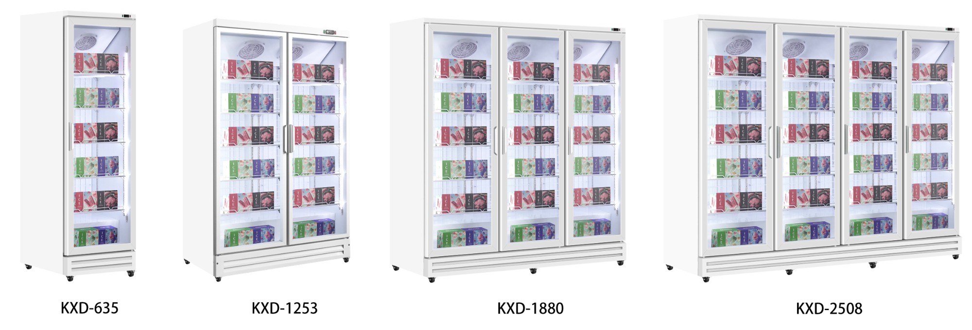 The KXD-1880 vertical freezer is designed to meet the high-volume freezing and merchandising needs of supermarkets, convenience stores, and commercial kitchens. With a generous storage capacity and a working temperature range of  -22°C to -18°C.