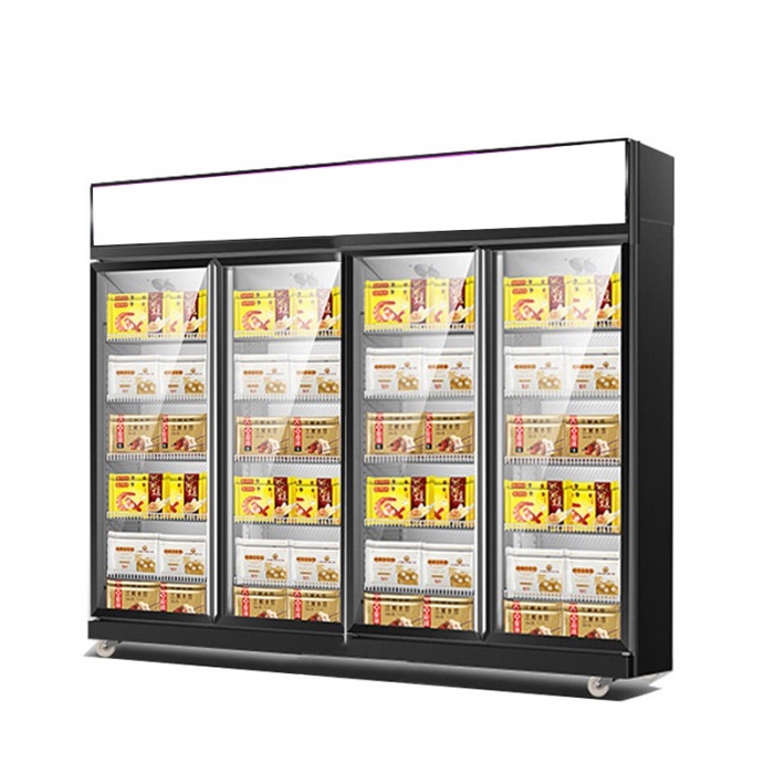4 door frozen food show refrigerator fan cooling ice cream freezer glass door vertical freezer