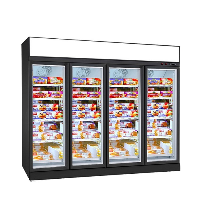 The Linkool four-door upright freezer display cabinet seamlessly showcases a diverse array of chilled and frozen goods. Its advanced cooling system ensures consistent freshness, while the spacious four-door design offers optimal organization.