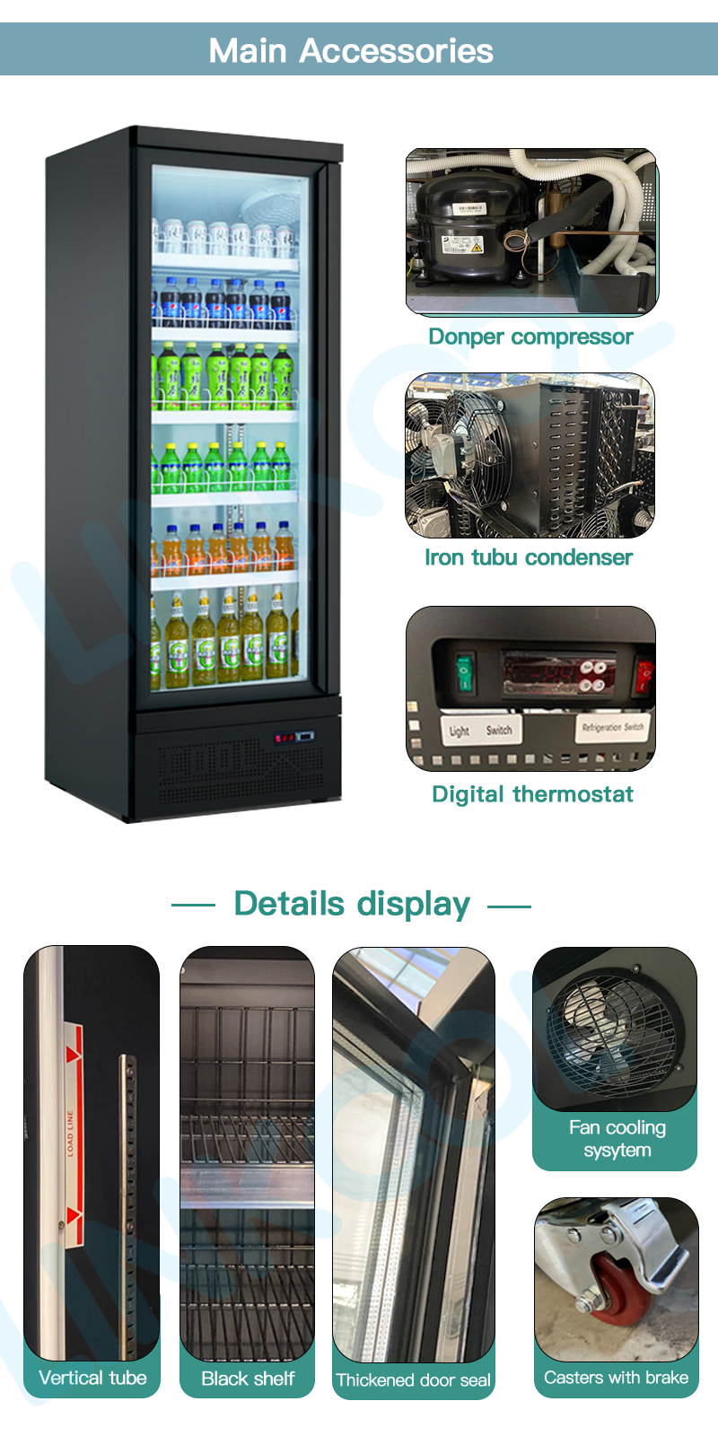 Soft Drink Showcase Display Refrigerator Commercial Upright Fridge Beverage Cooler