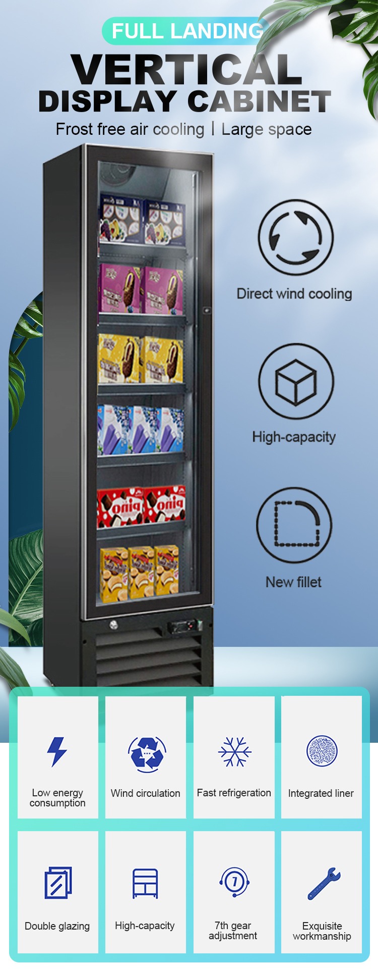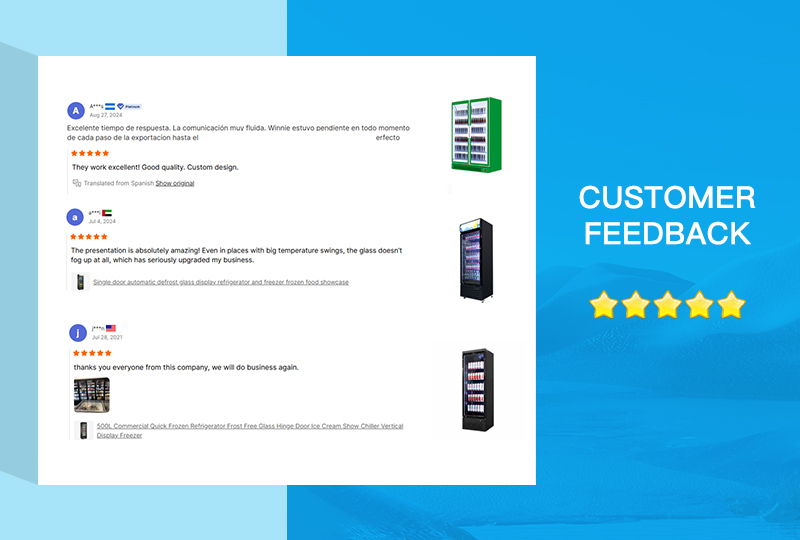 customer2:The upright freezer display I bought seamlessly blends stylish design with my store decor. Its remarkable refrigeration keeps foods fresh, maintaining stable temperatures even at peak hours. Energy-efficient, it slashes operational costs. A harmonious blend of aesthetics and practicality.